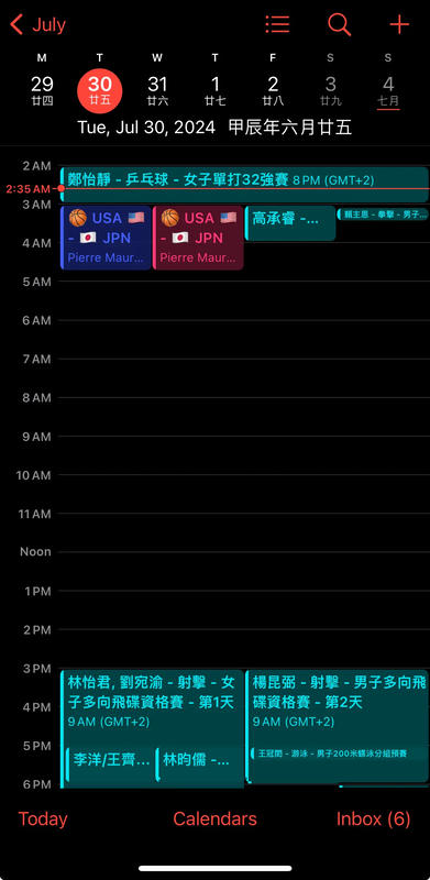昨天分享這個行事曆時,女友的朋友提到有其他 提供奧運賽程的行事曆的網站。發現是用蠻類似的作法,也是從官方網站抓取賽程。不同的是,他會根據比賽項目和國家分別產生不同的 iCalendar 檔案(.ics),如果你要訂閱個別比賽項目或國家就很合適,我自己也用了這個網站訂閱了日本排球、籃球和美國籃球的行事曆。
